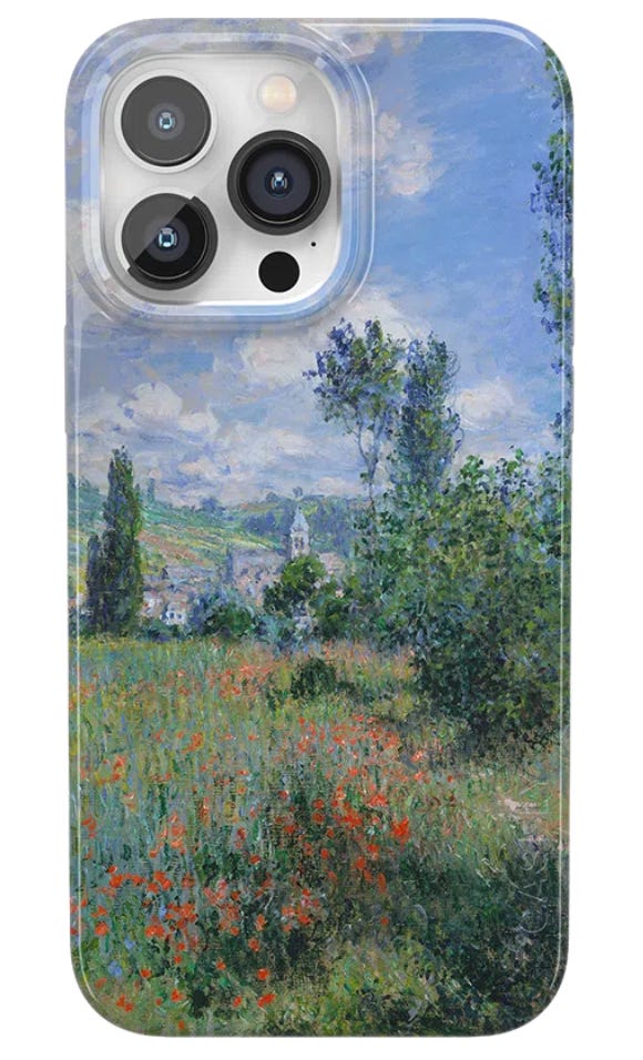 When my boring-ass clear glitter phone case turned yellow and started to crack, I knew I needed an upgrade. I find most phone cases either too cutesy or hideously ugly but thankfully I came across this Casely collab with the Met - Monet's painting View of Vetheuil (1880). It only cost $28 with a coupon code and I'm very happy with it. They sell several other Met collabs and they're all beautiful.